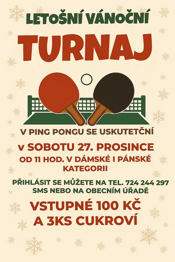 Přihlášky: SMS na 724 244 297 nebo osobně na obecním úřadě